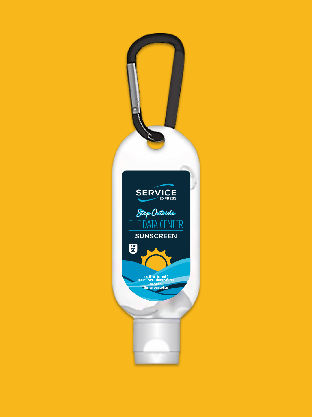 Apparel and package design for various products, including employee hat, intern backpack, “Step Outside the Data Center” sunscreen, and playing cards.