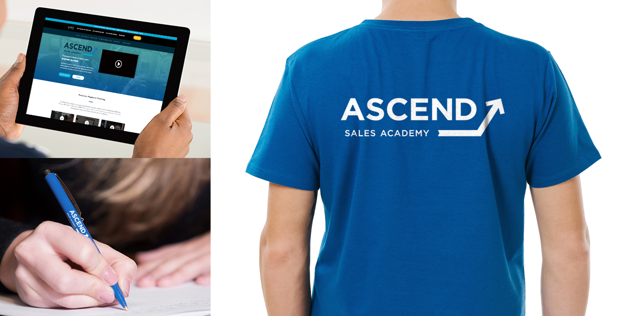 The need to communicate how the sales training at Service Express differs from other internal training as well as in the market place prompted the branding of the Ascend Sales Academy. Design work included style guide, web page, branded products and video graphics.